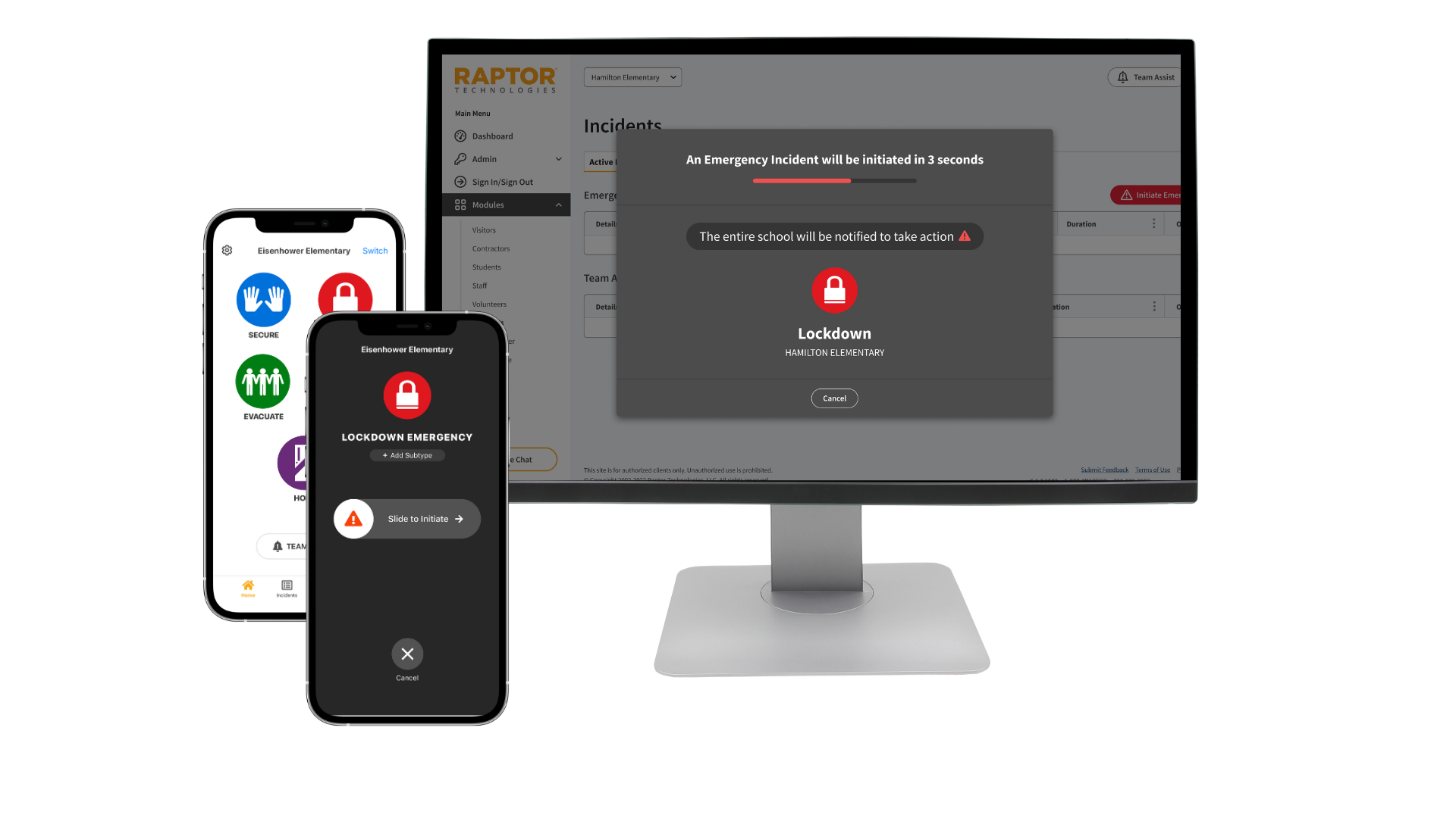 Raptor Connect initiates connected safety systems, from PA to door locks to visual messaging, helping schools activate multiple technologies from a single action.