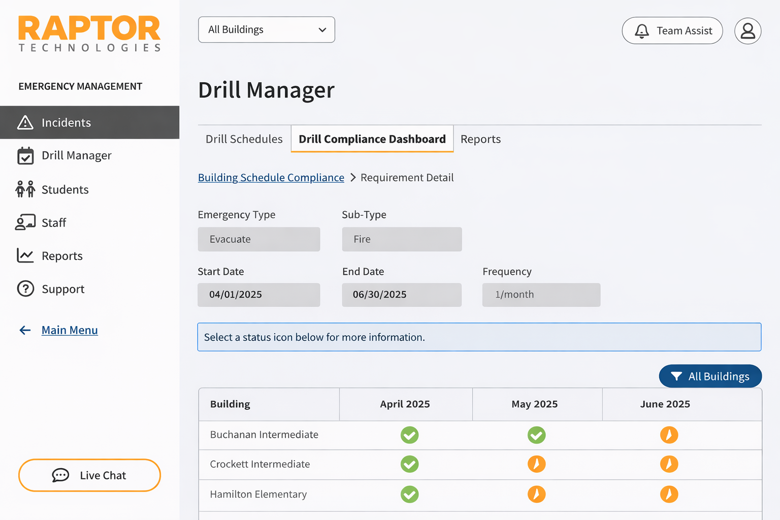 Raptor’s emergency management platform kept information flowing, connecting staff, administrators, and district leadership in real time so everyone stayed aligned and aware.